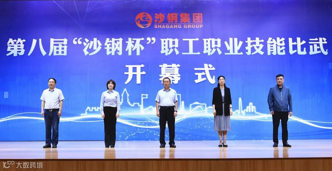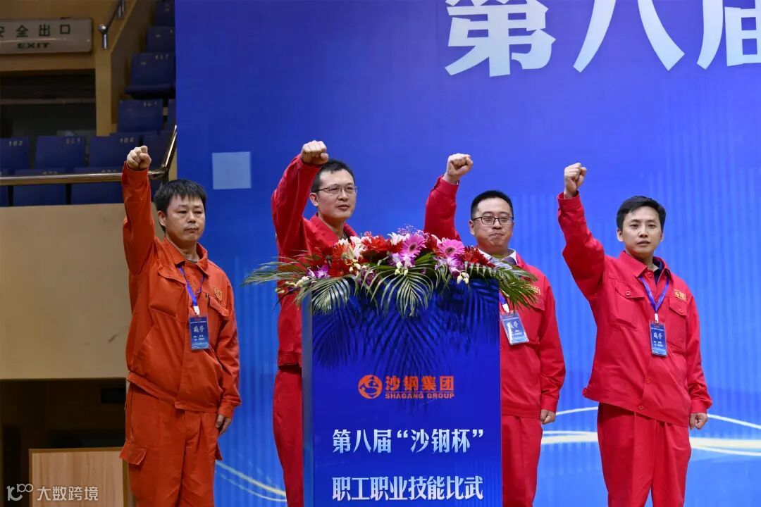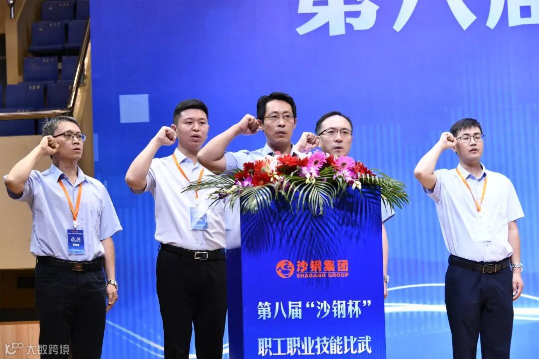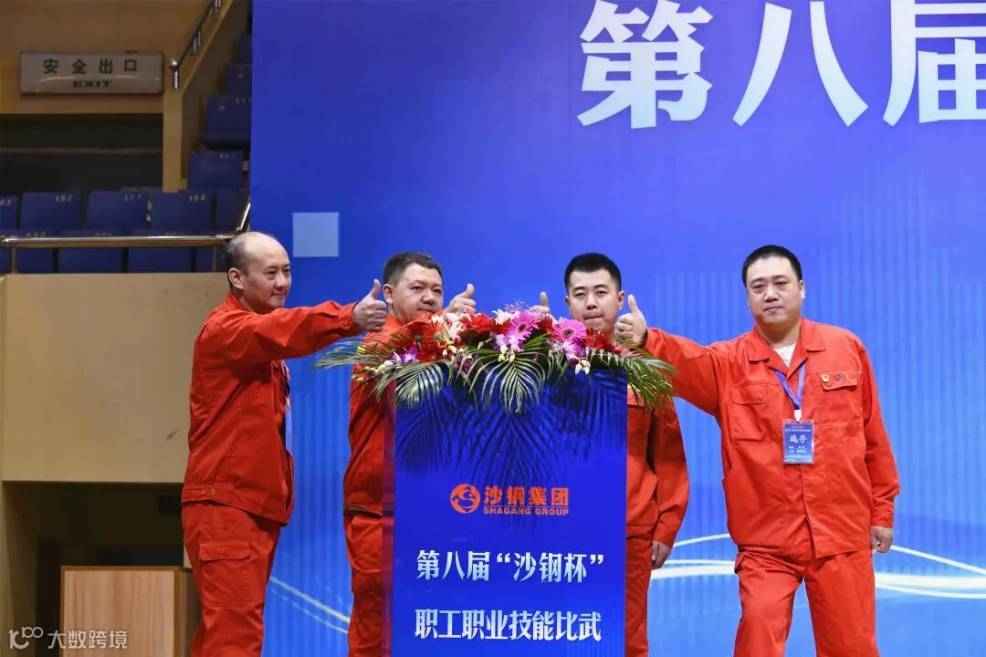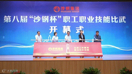 黄慧、陈晓东、雷学民等领导共同推动启动杆,随着“第八届‘沙钢杯’职工职业技能比武”横幅缓缓铺展,标志着本次赛事正式拉开帷幕。