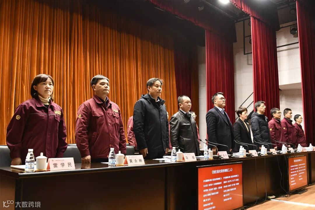 15时,大会在铿锵有力的《我们是光荣的钢铁工人》厂歌声中拉开序幕。