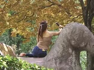前天上午,市民徐先生在南京一景区,发现一名女子骑在文物上玩自拍,一边拍还一边发朋友圈,情绪高昂,折腾了近5分钟,根本停不下来的节奏……