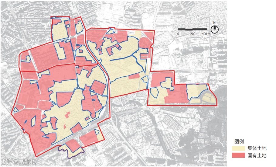 图1 广州市某村集体土地与周边国有土地交错布局示意图