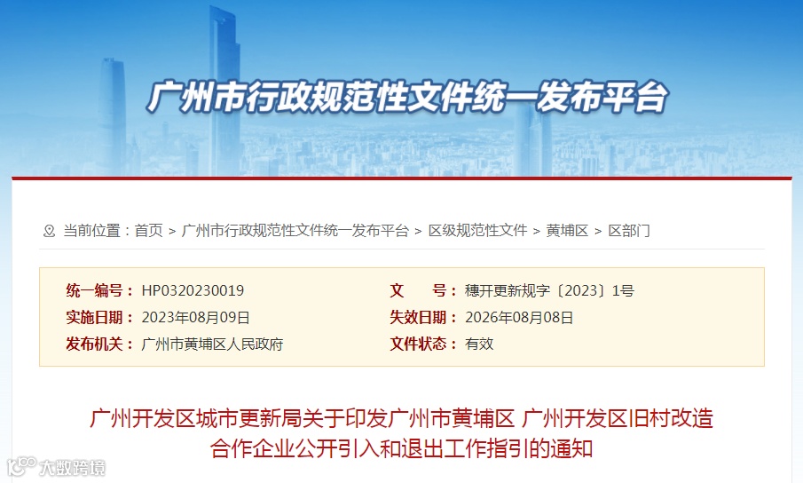 2020年12月,广州开发区城市更新局结合本区实际,制定《广州市黄埔区 广州开发区旧村合作改造类项目公开引入合作企业工作指引(试行)》(穗开更新规字〔2020〕2号,下称“原指引”),为充分发挥市场在资源配置中的决定性作用,推动城市高质量发展,黄埔区城市更新局组织修订并印发了《广州市黄埔区 广州开发区旧村改造合作企业公开引入和退出工作指引》(穗开更新规字〔2023〕1号,下称“新指引”),同时进行了政策解读(点击“阅读原文”查看)。新指引自印发之日起施行,有效期3年。
