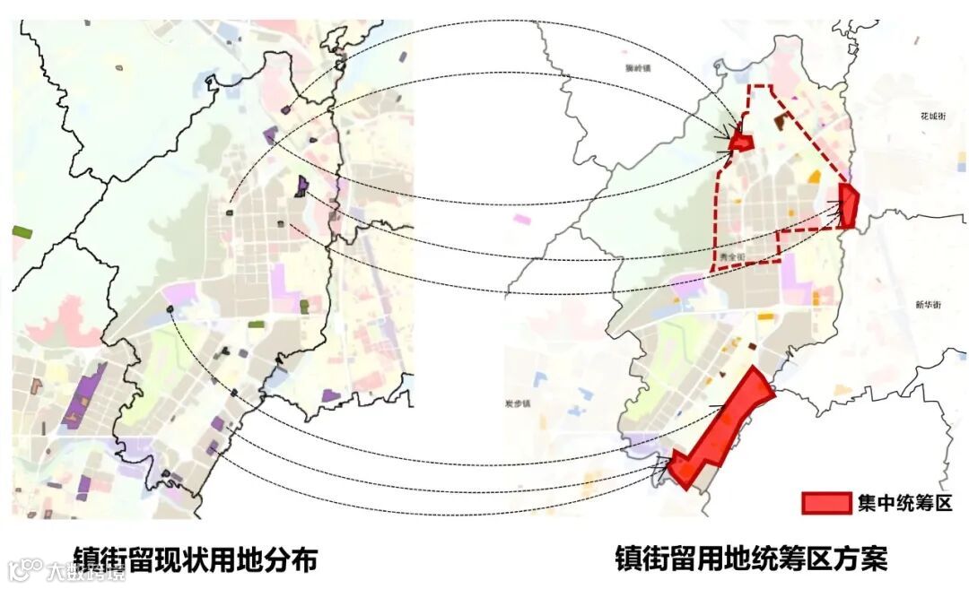 ➣案例:广州花都区为了解决留用地零散分布,低效开发的现状,提出了“园区引领、镇级统筹”的创新思路。“园区引领”是指围绕全区规划十大重点产业园区,对留用地进行集中选址、统筹开发。“镇级统筹”是指在留用地落实规划中,以镇街为单位,以多轮协商的方式统筹各村零散留用地指标、集中布局,最终形成37个镇街级留用地统筹区,并对各统筹区提出发展指引,明确用地布局、产业策略、开发指标及模式等。(资料来源:《集体留用地的土地发展权:国土空间规划背景下的思考》)