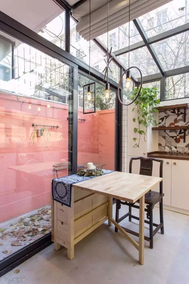 3、露台的小黑屋拆掉,做了一个玻璃房,作为餐厨一体的开放式设计;