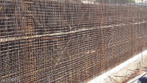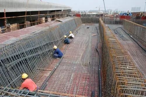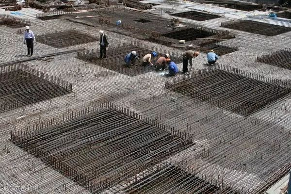 5、底板纵筋接头长度有的太长,超过一个搭接长度,有的则太短,不能满足规范所要求的长度。底板通长筋没绑扎成平行直线,导致同截面钢筋根数不同。
