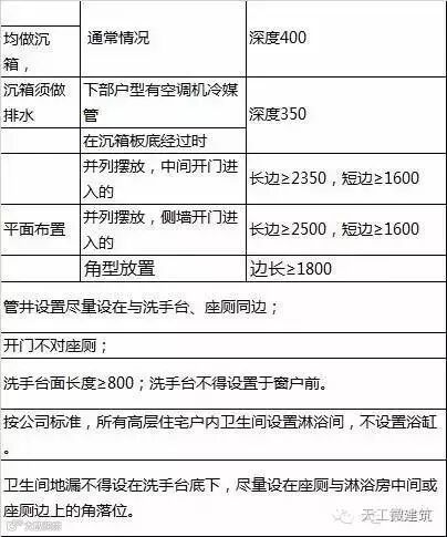 面积较小的卫生间尽量不做管井,排水、排污管放在天井内,但在连排的单元式端部户型,则做管井,避免管道外露。