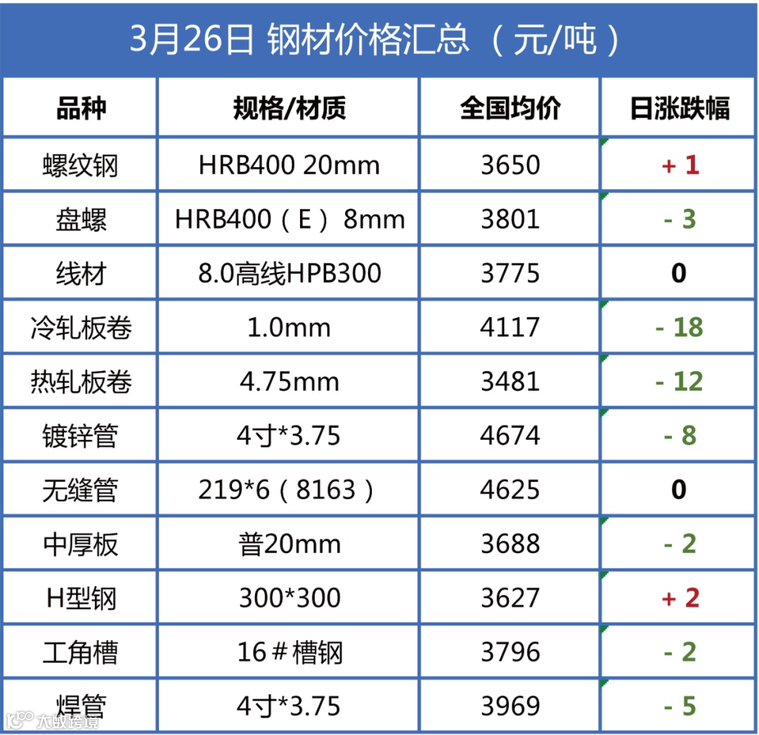 26日下午调价:现昌黎部分普方坯资源降20至3100,含税出厂。