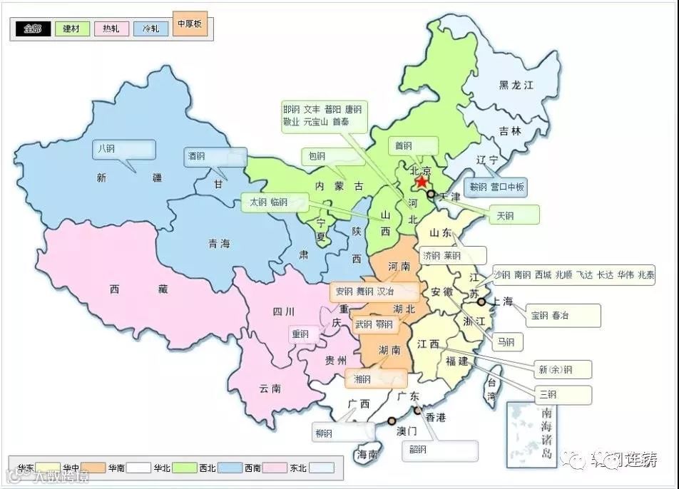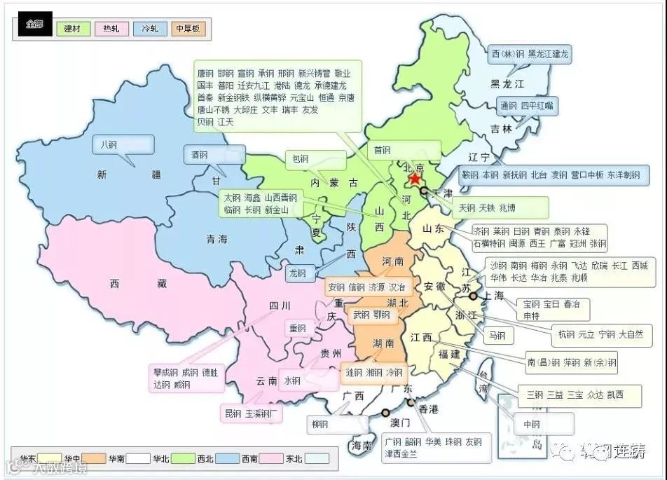 【小贴士】中国各大钢厂分布地图大全!