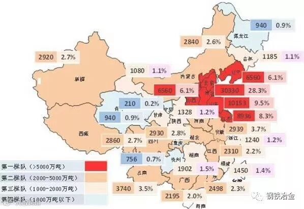 2、我国各省钢铁厂产能汇总及分布图