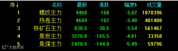钢材消费短期难有起色,股期两市整体情绪不佳,期钢昨日单边走跌,螺纹、热卷均增仓下挫,跌幅分别为3.62%和3.4%,主力期价跌破两周震荡区间下沿,螺纹收于4468元/吨,热卷收报4609元/吨,日内均创4个半月新低,成交缩量。