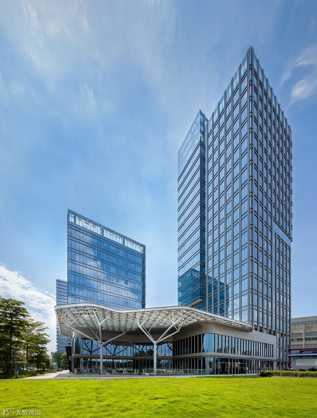 项目简介:项目以“合作交流,活力办公”为设计理念,通过融合岭南传统建筑特色,实现建筑与自然环境的和谐共生。塔楼采用简洁明快的方形几何造型,通过切割、悬挑和搭接等手法削弱体量的厚重感,营造高耸挺拔的竖向视觉效果,将建筑与场地有机结合,形成一个高质量、高品质的商业综合体。