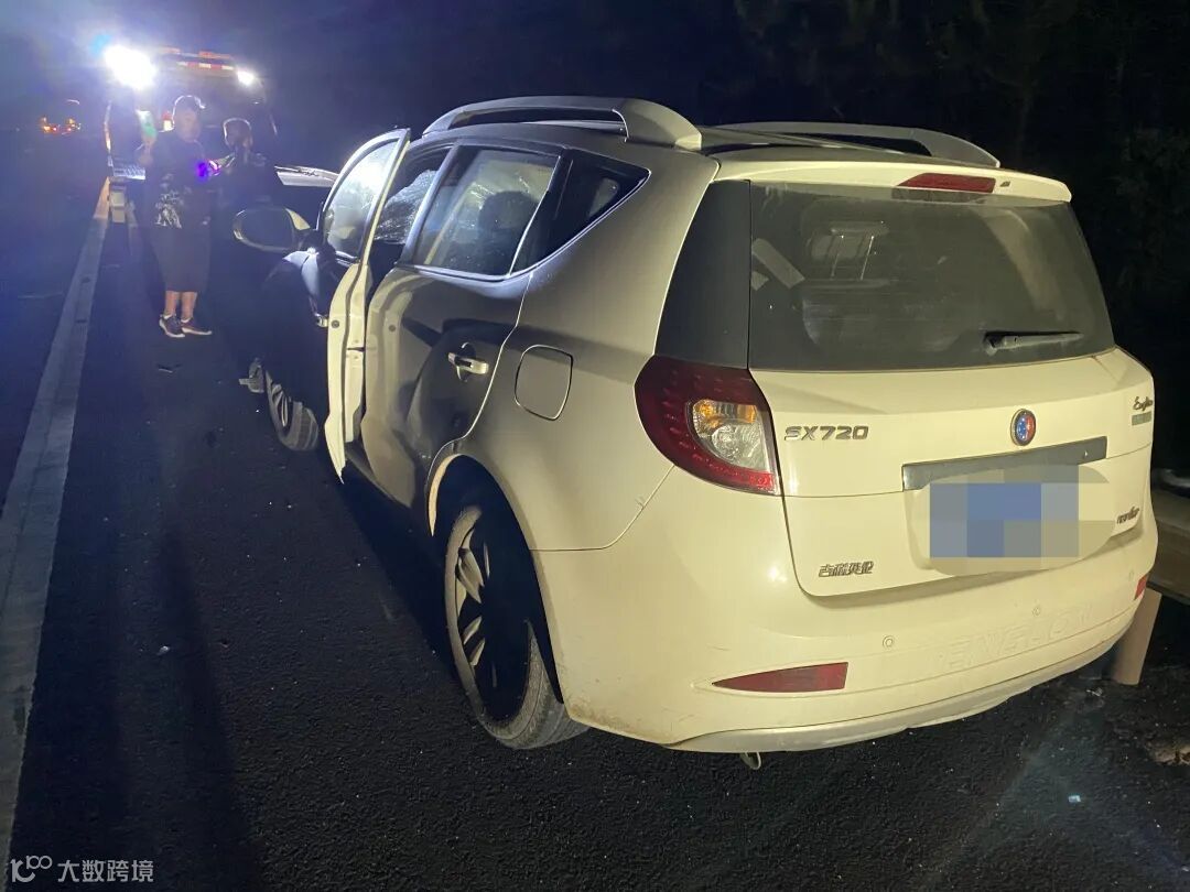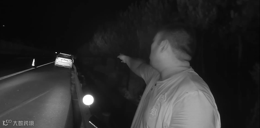 当天晚上九点,江西高速交警直属四支队第一大队巡逻民警在沪昆高速公路新余段巡逻时发现,一辆白色小车停在应急车道,一名男子站在小车旁护栏外打电话,小车前方几百米处还停有一辆大货车。
