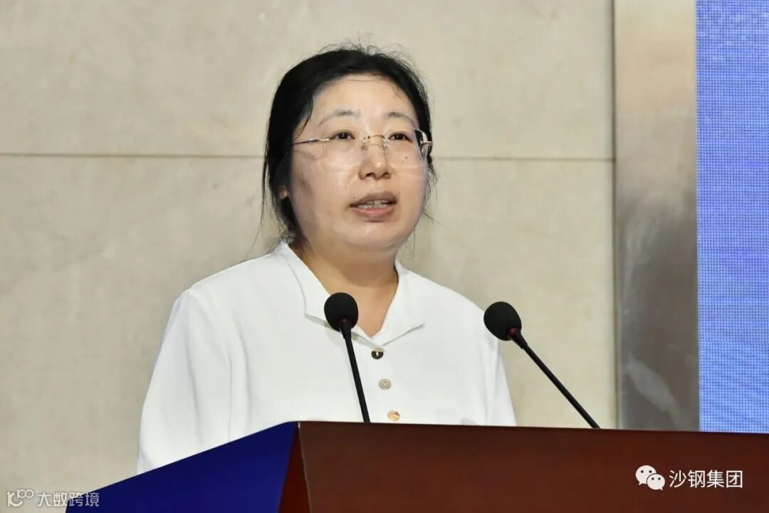 集团公司董事局常务执行董事、副总裁兼总工程师、有限公司董事长陈少慧发表致辞,对参加本次会议的领导、代表及嘉宾表示欢迎和感谢,并简要介绍了沙钢发展现状。她说,沙钢坚持以钢铁强国为己任,以打造“绿色沙钢”“品质沙钢”“高效沙钢”“创业沙钢”“智慧沙钢”和“责任沙钢”为愿景,致力于为各行各业提供最具价值的钢铁材料和工业服务解决方案。目前沙钢拥有五大生产基地,分布于江苏、辽宁、河南等地,生产流程长短结合,产线工艺技术先进,产品品类丰富,远销全球100多个国家和地区。