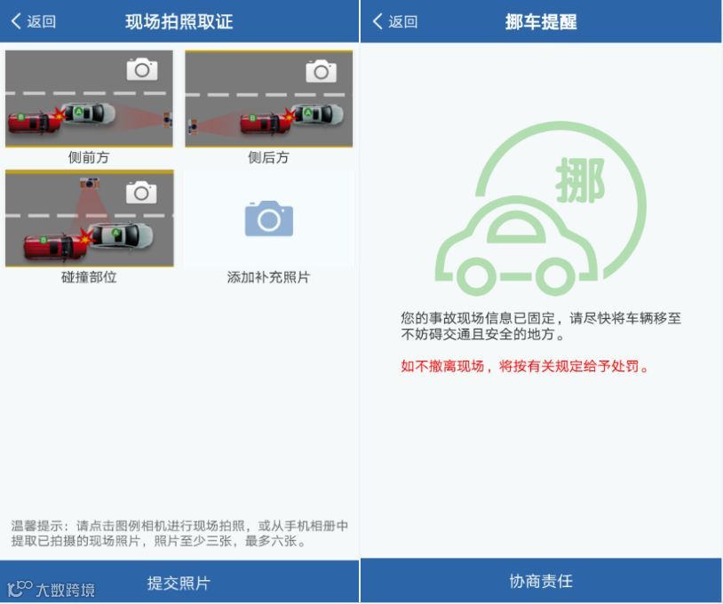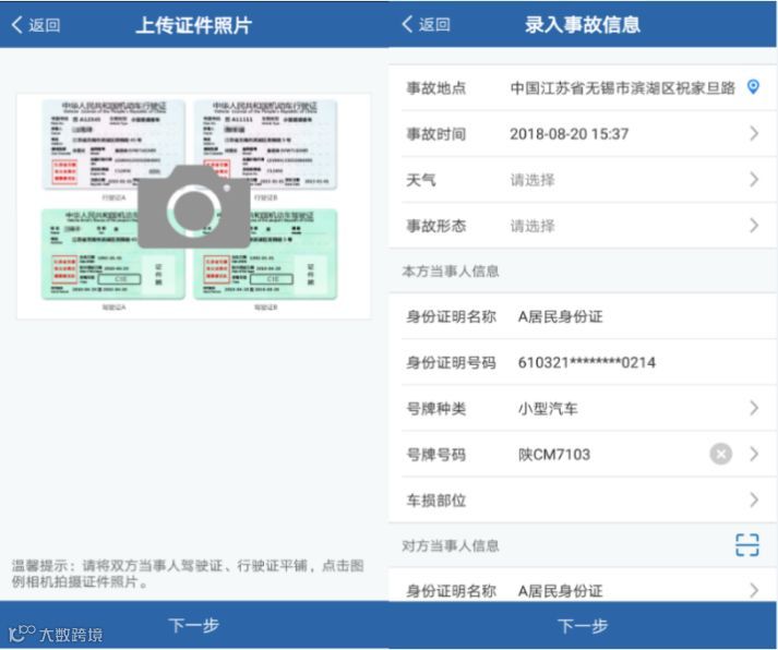 双方当事人撤离现场后,根据APP引导,需要拍摄双方证件照片和录入事故信息。