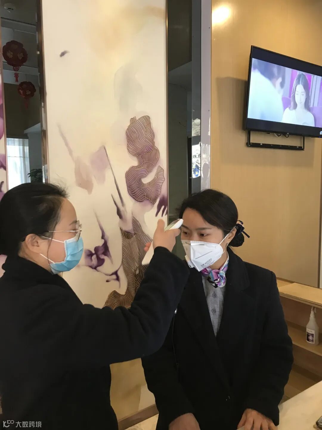 前台配备消毒酒精和体温枪