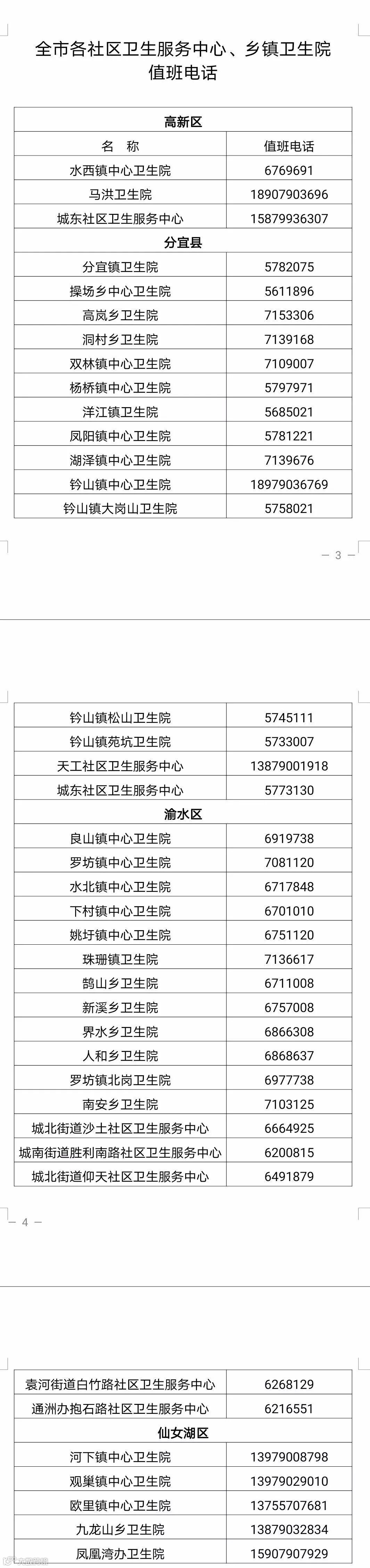 附件:全市各社区卫生服务中心、乡镇卫生院值班电话