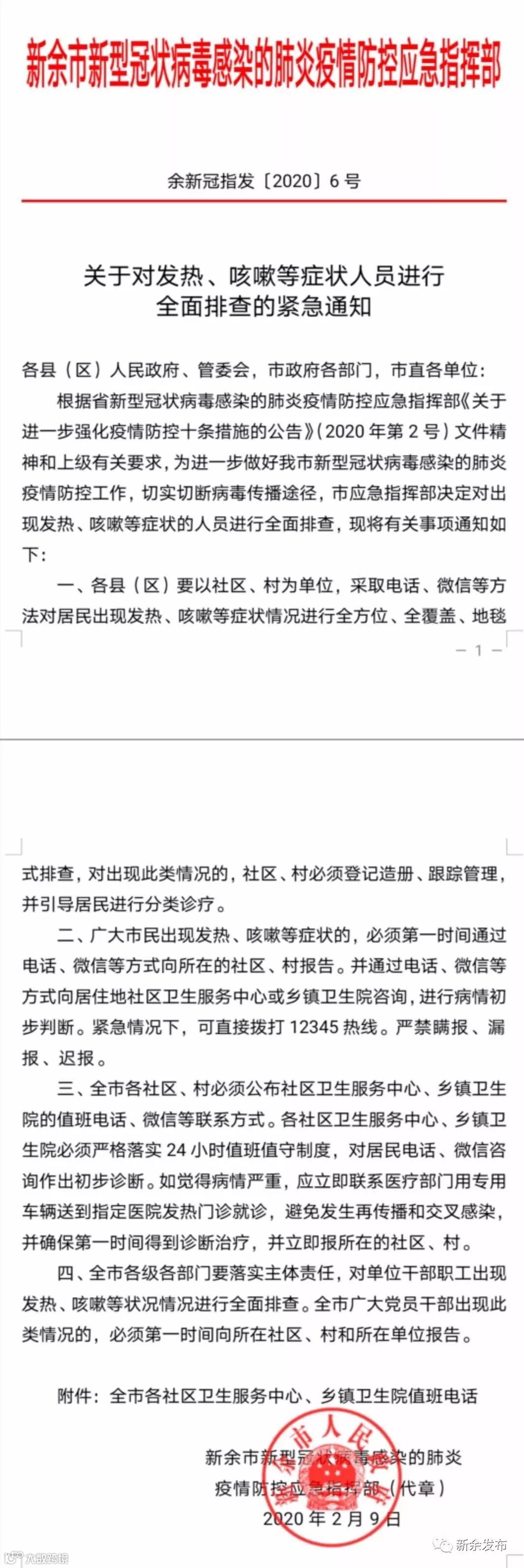 一、各县(区)要以社区、村为单位,采取电话、微信等方法对居民出现发热、咳嗽等症状情况进行全方位、全覆盖、地毯式排查,对出现此类情况的,社区、村必须登记造册、跟踪管理,并引导居民进行分类诊疗。