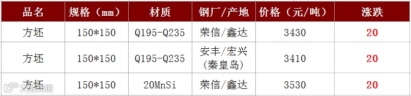 因昨日市场成交偏弱,今日早盘商家报价持稳。随着期螺的震荡走强,钢坯价格小幅上涨20,重回3400元/吨的上方,市场心态偏好。