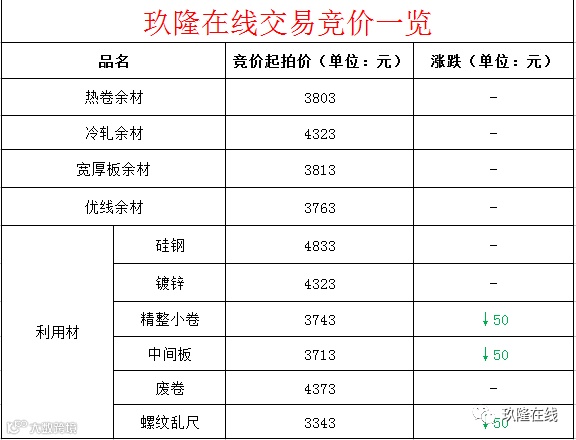 交易大厅┃3月12日玖隆在线交易竞价一览