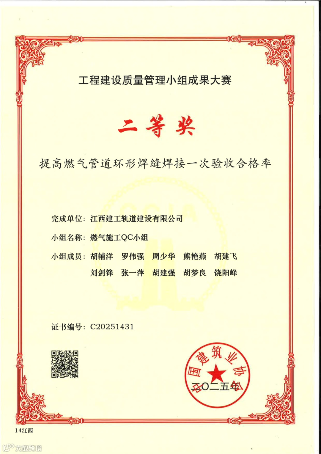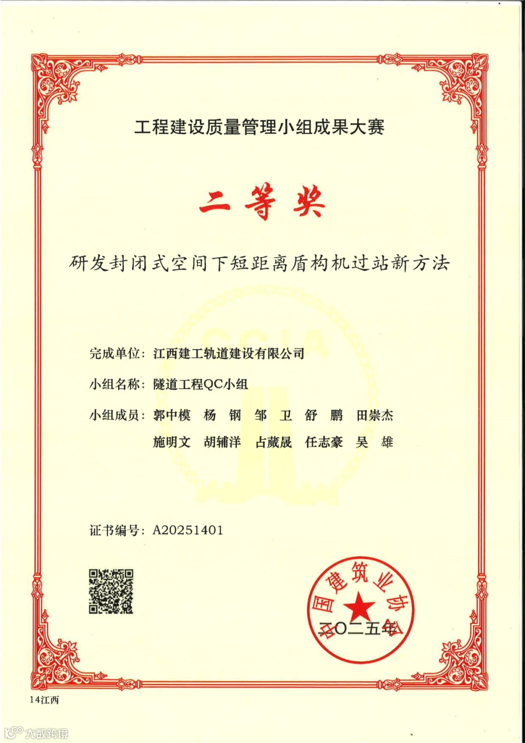 除了一等奖的耀眼成绩,公司其他QC成果同样表现出色。由隧道工程QC小组发布的《研发封闭式空间下短距离盾构机过站新方法》和燃气施工QC小组发布的《提高燃气管道环形焊缝焊接一次验收合格率》,双双荣获全国QC大赛二等奖,展现了公司在多个工程领域的质量管理硬实力。