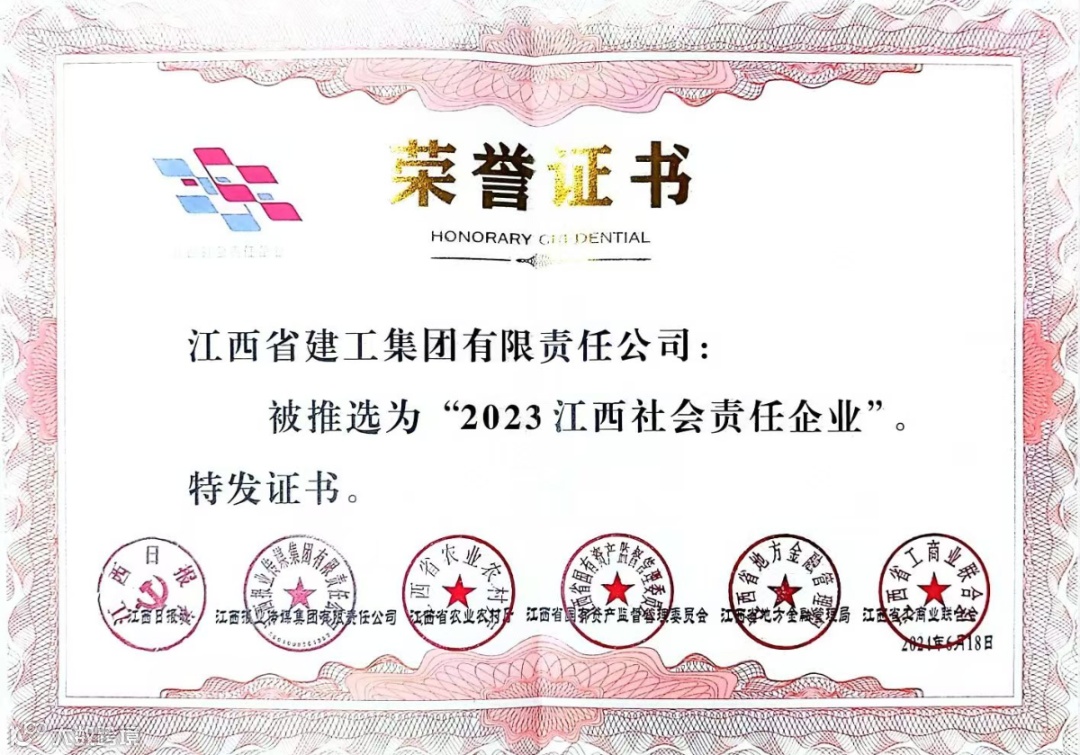 为推动我省企业社会责任体系建设,2023年12月,由江西日报社(江西报业传媒集团)、江西省农业农村厅、江西省国有资产监督管理委员会、江西省地方金融管理局、江西省工商业联合会共同发起的“义利天下·2023江西社会责任企业(企业家)”推选活动全面启动,共1462家企业、701名企业家报名参加,最终共有100家企业、10名企业家入选2023江西社会责任企业(企业家)总榜单。据悉,这也是江西建工连续第二年入选“江西社会责任企业”榜单。
