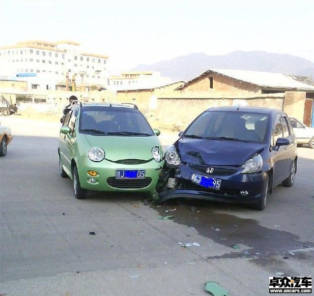 广本车祸 :(被后面车追尾, 整个后排消失!三厢变两厢!后座位没了! )