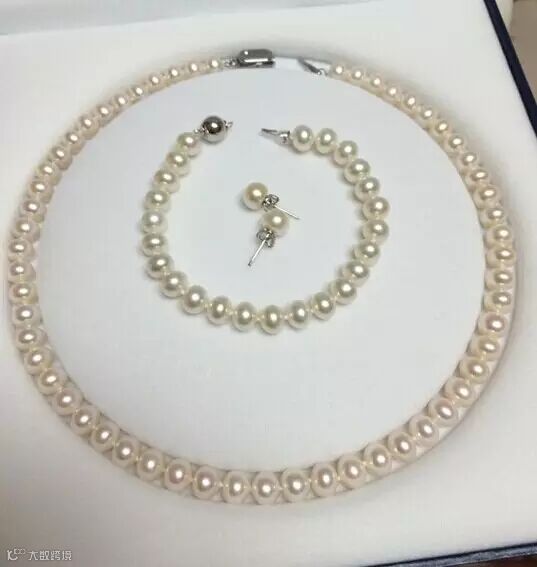 珍珠大小:珍珠项链+手链为8毫米大小。耳钉大小为7毫米
