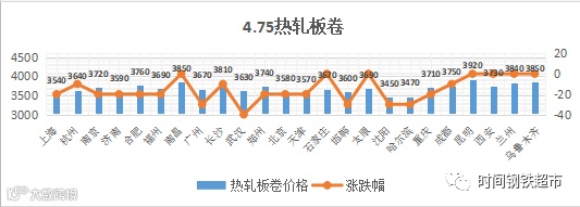 【热卷】热卷跌幅10-40元,全国24个主要市场4.75 热轧板卷平均价格3686元/吨,较上个交易日下调16元/吨。
