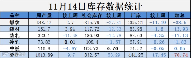 今日钢价在限产、去库存等重重利好推动下普遍上调,期货波动较大。从基本面来看,进入采暖季,多地重启重污染预警,有助于产量的继续回落,与此同时,房地产投资保持高速增长,下游需求韧性仍在,宏观层面逆周期调节加强,稳增长继续加码,市场信心有所提振,基本面短时转好,预计本周钢价继续涨。