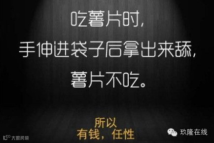 必须指出的是,与很多网络流行语一样,“有钱就是任性”的流行也经历了多重变奏。最显著的一点是,这句话慢慢地少了贬义的调侃色彩,变成了一句更温和、更有趣、更大众的流行表达。这一点至关重要,因为它实质上将“有钱就是任性”的适用对象,从王思聪这样的真富人,拓展到了不管有钱没钱的普通人。