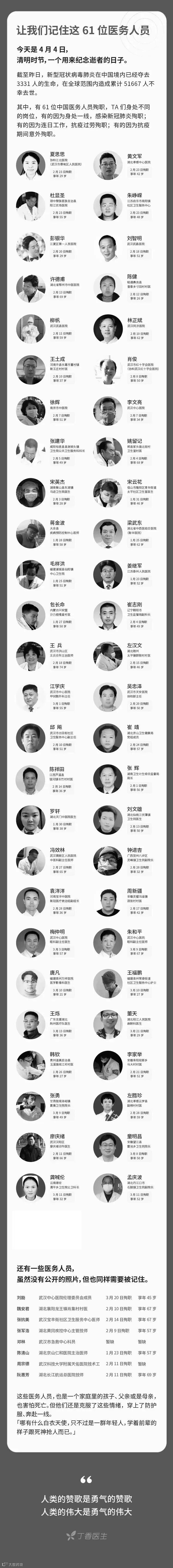 我们将永远铭记在此次疫情中牺牲的烈士和同胞,他(她)的英雄事迹也将在我们心中长存!