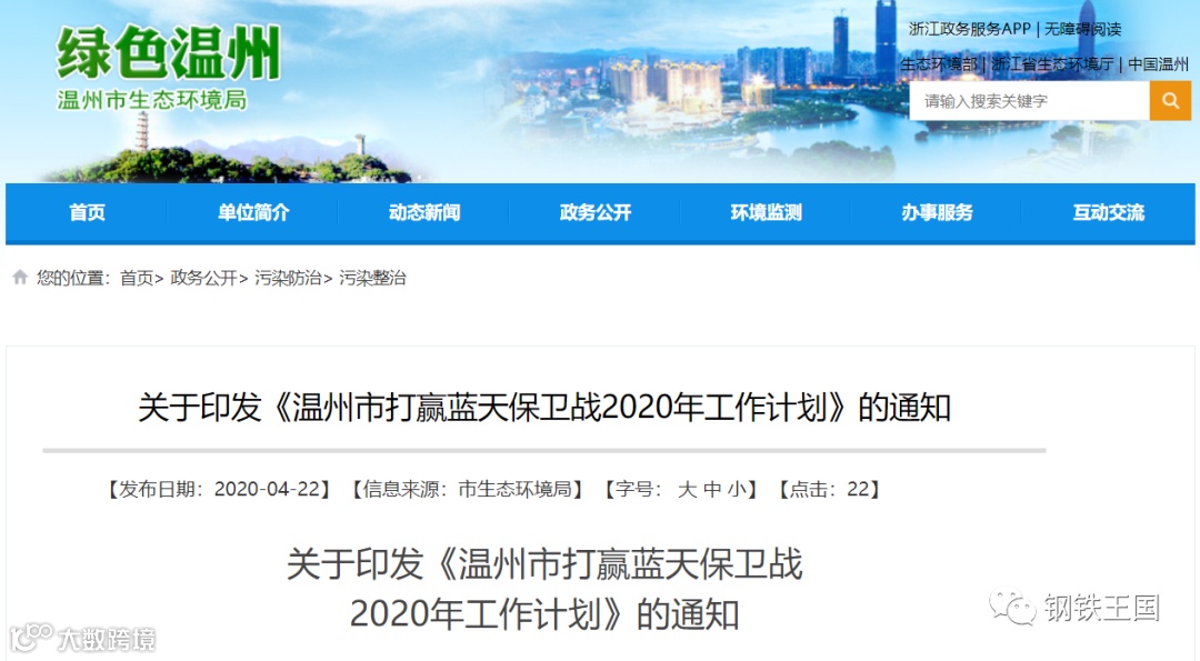 5、温州市打赢蓝天保卫战2020年工作计划