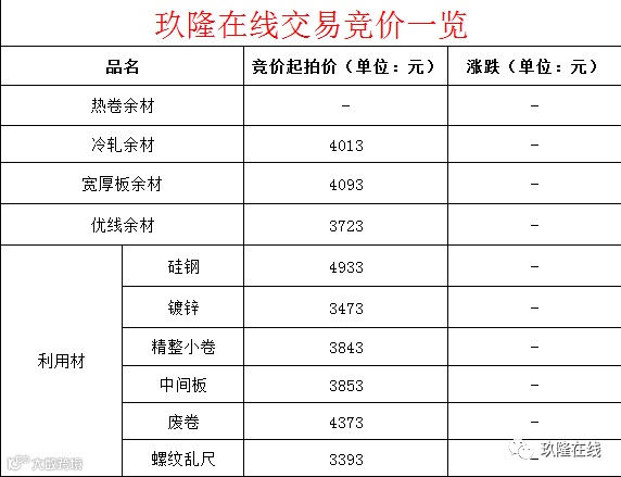 交易大厅┃3月6日玖隆在线交易竞价一览