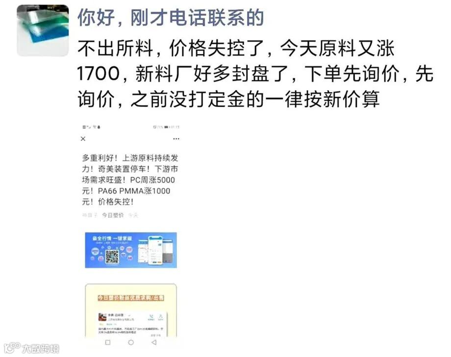 以上这样的对话正在某些地区的塑料市场上演,缺货、涨价成为常态!停工令更是火上浇油!在最后提醒广大客户,趁还能生产,抓紧时间备货吧!特殊时期,实属无奈,请不要再问价格,直接问有没有货! 来自网络