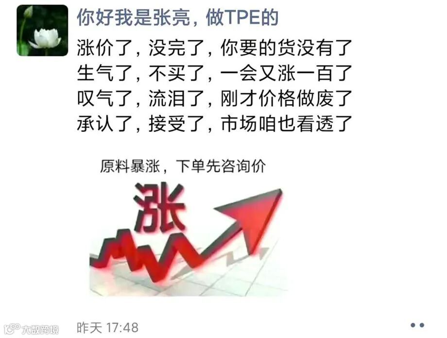 老板娘,抱歉的通知,原材料涨了,今天又调整价格了!