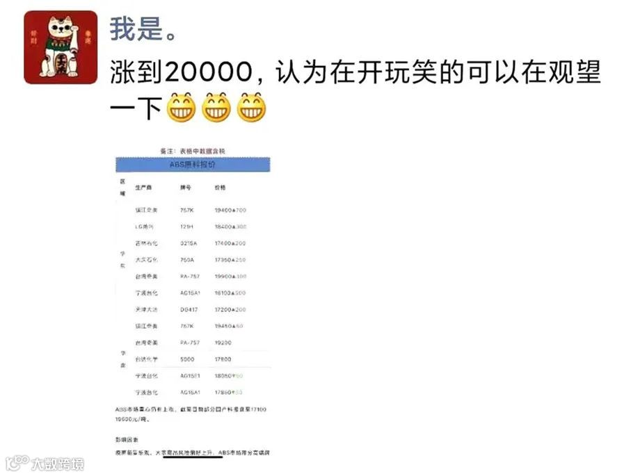 接下来的塑料行业,有钱也不一定买得到货的情况或越来越多,目前PC、ABS等部分厂家已封盘停售,此番停工令的发布,或让很多塑料厂有单也不敢接了,卖完库存可能就关门歇业了!