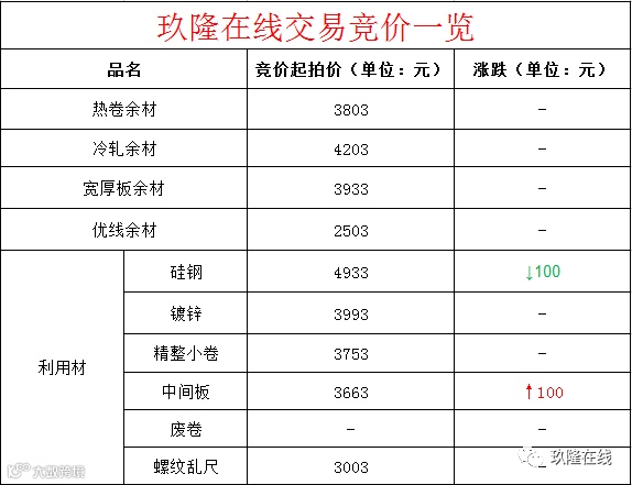 交易大厅┃11月8日玖隆在线交易竞价一览