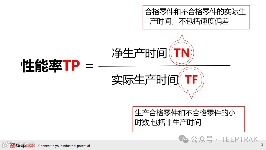 2. 性能效率(Performance):反映生产线在运行时间内实际产出速度与理论最大产出速度的比例。涉及到速度损失,如设备慢速运行、短暂停顿等未达设计速度的情况。