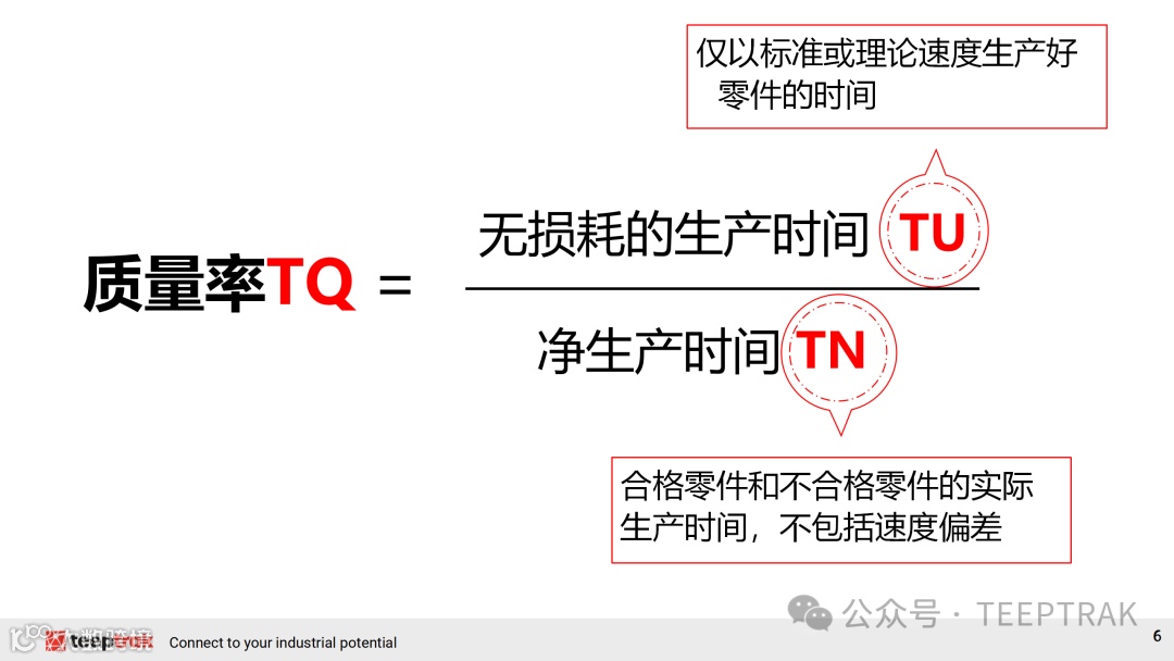 3. 质量合格率(Quality):是指生产线产出的合格产品数量占总产出产品的比例,体现了生产过程中的废品率或返工率。