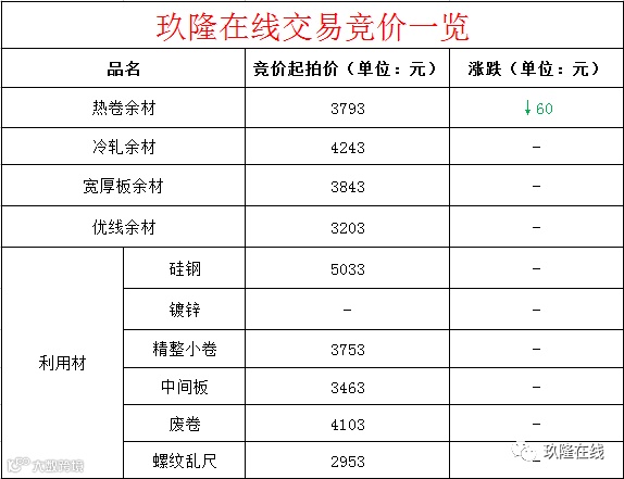 交易大厅┃10月20日玖隆在线交易竞价一览