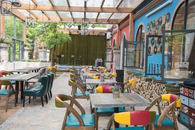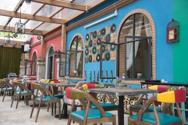 彩色村有一间花园式音乐西餐酒吧