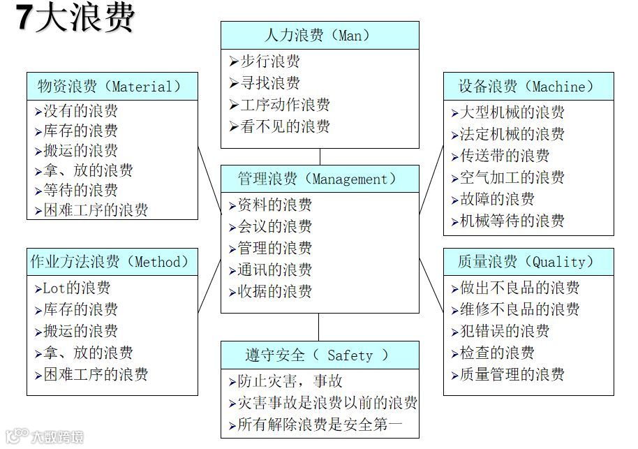 生产线布局损失/后勤和运输/管理损失/测量和调节损 失/操作运动损失