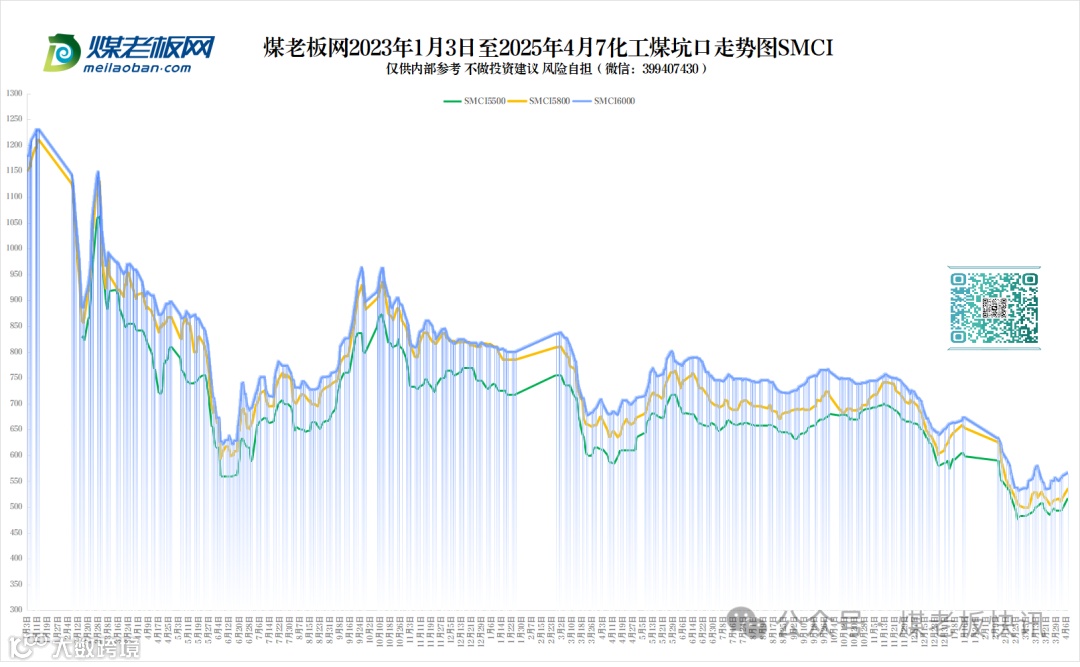 今日节后第一天,坑口价格开始趋稳,少部分矿小涨3~10元/吨,部分前期涨价过频煤矿价格转跌5~10元/吨。受国际关税等政策影响,今日国内商品期货大面积收跌,市场参与者都煤炭后市走势预期出现分歧,利好、利空交织,煤价将延续窄幅波动。神木:调价煤矿数量较少,涨跌波动3~10元/吨,长途煤车偏少,拉运主力即短倒上站煤,货源有所趋紧;府谷:暂无较大变化;榆阳:个别大矿涨跌互现,整体变动小;横山:行情持稳;内蒙:整体持稳,局部矿涨跌互现5~10元。