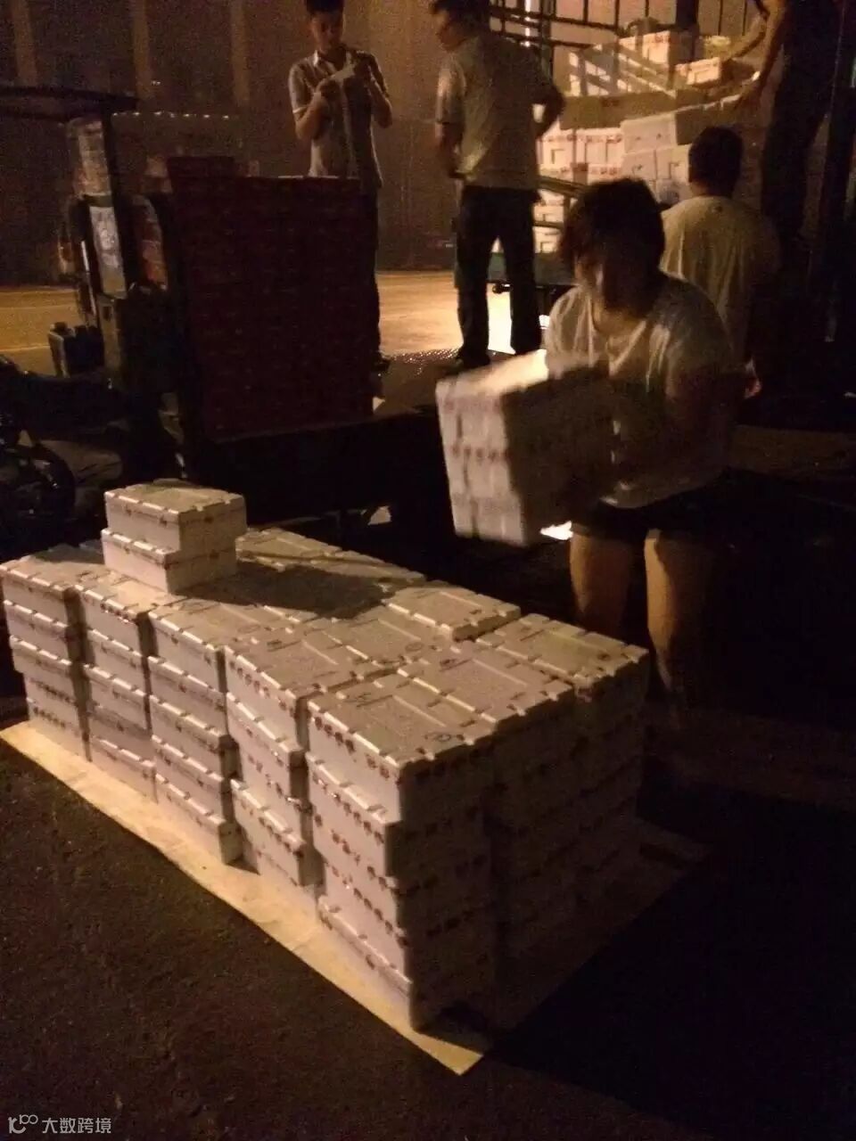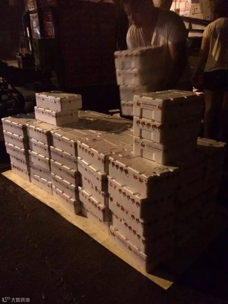 最好的樱桃通过专线大货车,达到新余,工作人员马上开始派送
