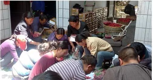 樱桃采摘下来之后经过精心的分拣,分成三六九等,然后用泡沫箱内加冰袋打包,李龙说,以前村里樱桃都是被水果批发商承包,价格很低,批发商之间倒腾几次,到零售商,再到客户手里,最后价格惊人的翻了几倍