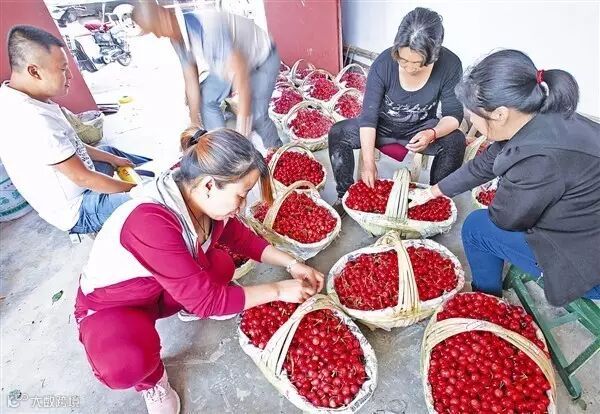 打包好的樱桃,需要通过专线物流直接拉到目的城市,李龙说,三年前,认识了江西新余一个做互联网的小伙子,他整合了江西很多资源,愿意比批发商稍高一点价格承包所有樱桃,每颗树上最好的三斤樱桃给自己的消费者,其他樱桃也转卖给批发商,而他卖给消费者的价格比市场要低很多。