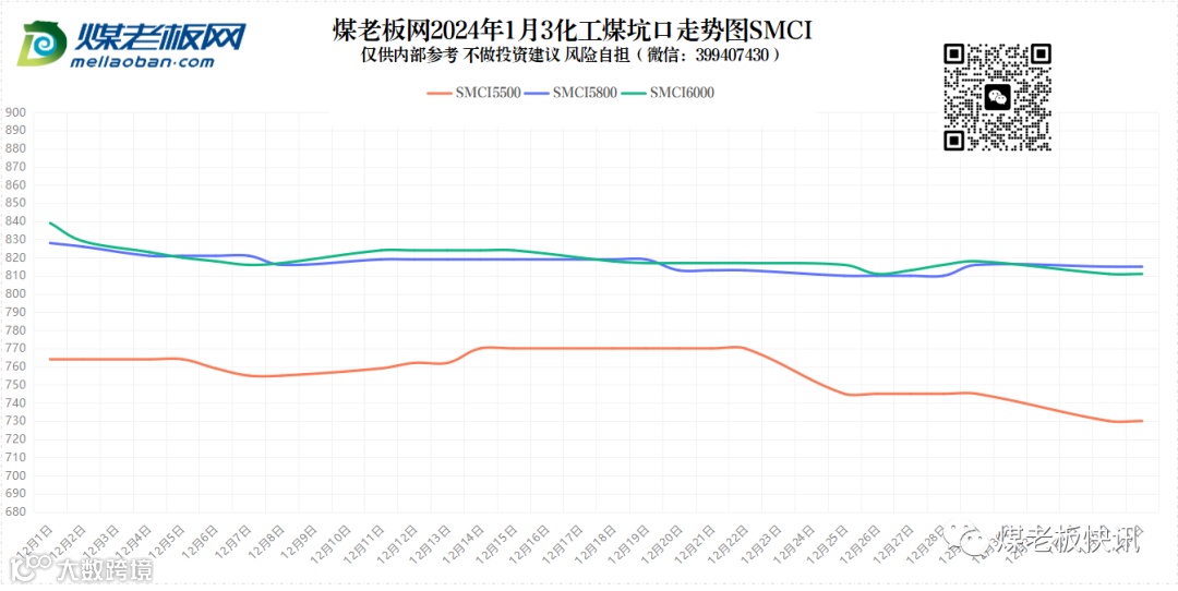 截止1月3日上午,据追踪的主流煤矿来看,价格变动煤矿不足10家(含榆神、府谷、横山、内蒙):均以小幅上涨为主,涨幅5~15元/吨。近日榆阳区域价格下跌为主,跌幅10~30元/吨,部分配焦籽煤跌幅较大,仅个别原煤价格上涨20元/吨;府谷区域面煤均已下跌为主,元旦假期累计跌幅15~40元/吨,个别块煤上涨10~20元/吨。横山区域价格持稳;内蒙区域价格以小幅下跌为主,跌幅5~10元/吨;最新一期神华外购价格较上期下跌10~22元/吨。