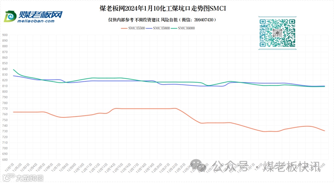 截止1月10日上午,据追踪的主流煤矿来看,价格变动煤矿近10家(含榆神、府谷、横山、内蒙):均下跌10~30元/吨,其中面煤、化工煤下跌为主。榆阳区域需求持续偏差,部分大矿铁销、地销面煤下跌2~9元/吨,个别大矿竞拍面煤小涨5元/吨,洗混块降20元/吨,仅个别煤矿面煤价格上涨20元/吨;府谷区域价格趋稳,个别煤矿面煤下跌10元/吨;横山区域价格暂无变化;内蒙区域价格下跌煤矿增加,部分煤矿面煤10元/吨一天两降,个别热销大矿混中块上涨5元/吨。