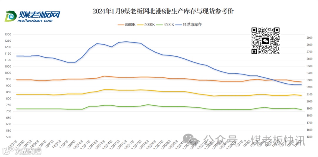 近日国家矿山安监局陕西局关于加强春节及两会期间煤矿安全工作的紧急通知,停产设备检修、搬家倒面的民营矿略有增加,部分煤矿配合检查生产不稳,煤矿原煤多有库存,有、无库存的民营矿各参半,仅以主要供应东北民用市场的煤矿块煤销售较好。目前坑口、港口、电厂价格均下跌,加剧市场看跌情绪。整体来看,当下的坑口行情和‘三九’里的天气一样,寒气凛冽。