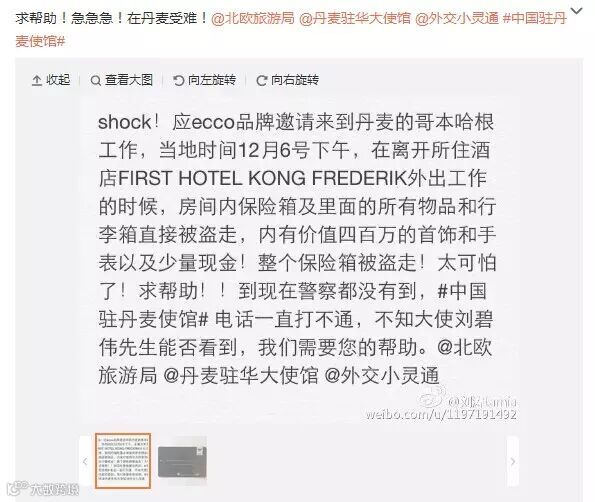 概括来说就是她在丹麦被偷了400万然后没人管!