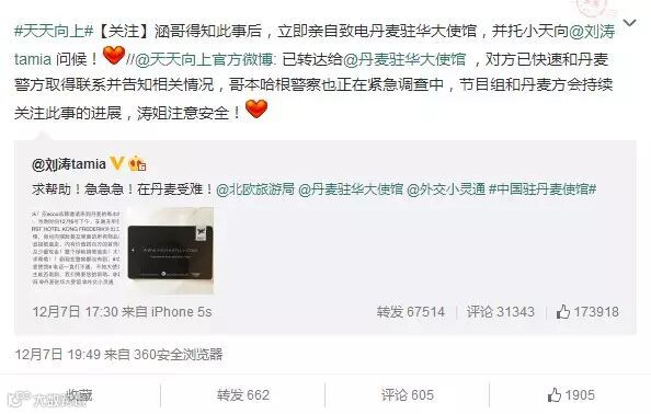 然后刘涛就真的联系了汪涵,涵哥亲自致电丹麦驻华大使馆,随后,这事儿就闹!大!了!
